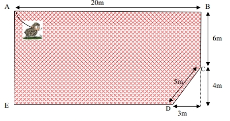 Le mouton est attaché au piquet A à l’aide d’une chaîne de 5m de long.
