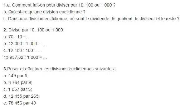 Des exercices de maths en 6ème portant sur la division afin de réviser en ligne et de développer ses compétences.