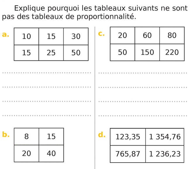 Les tableaux suivants sont-ils des tableaux de proportionnalité ?