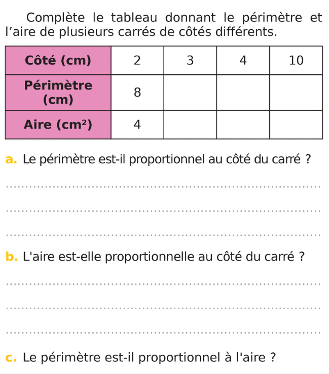 Exercice 6 – reconnaître un tableau de proportionnalité.