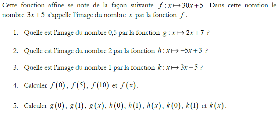 Exercice 6 – fonctions affines, images et antécédents.