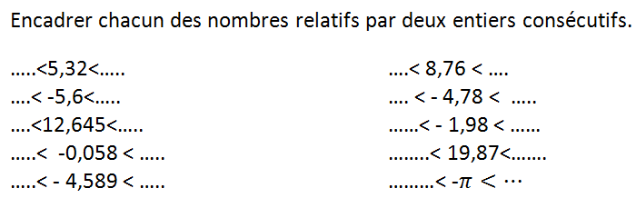 Exercice 51 – encadrer entre deux entiers relatifs.