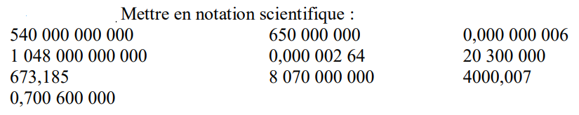 Exercice 30 – donner l’écriture scientifique de ces nombres.