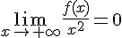 VRAI. Si 1\leq\, f(x)\leq\, x+1, alors pour de grandes valeurs de , le terme x+1 est négligeable par rapport à x^2, donc \frac{f(x)}{x^2}\to0.