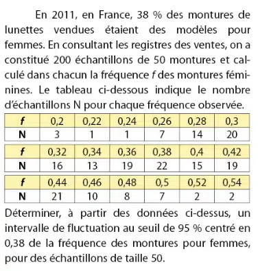 Exercice 8 – montures de lunettes et intervalle de fluctuation.